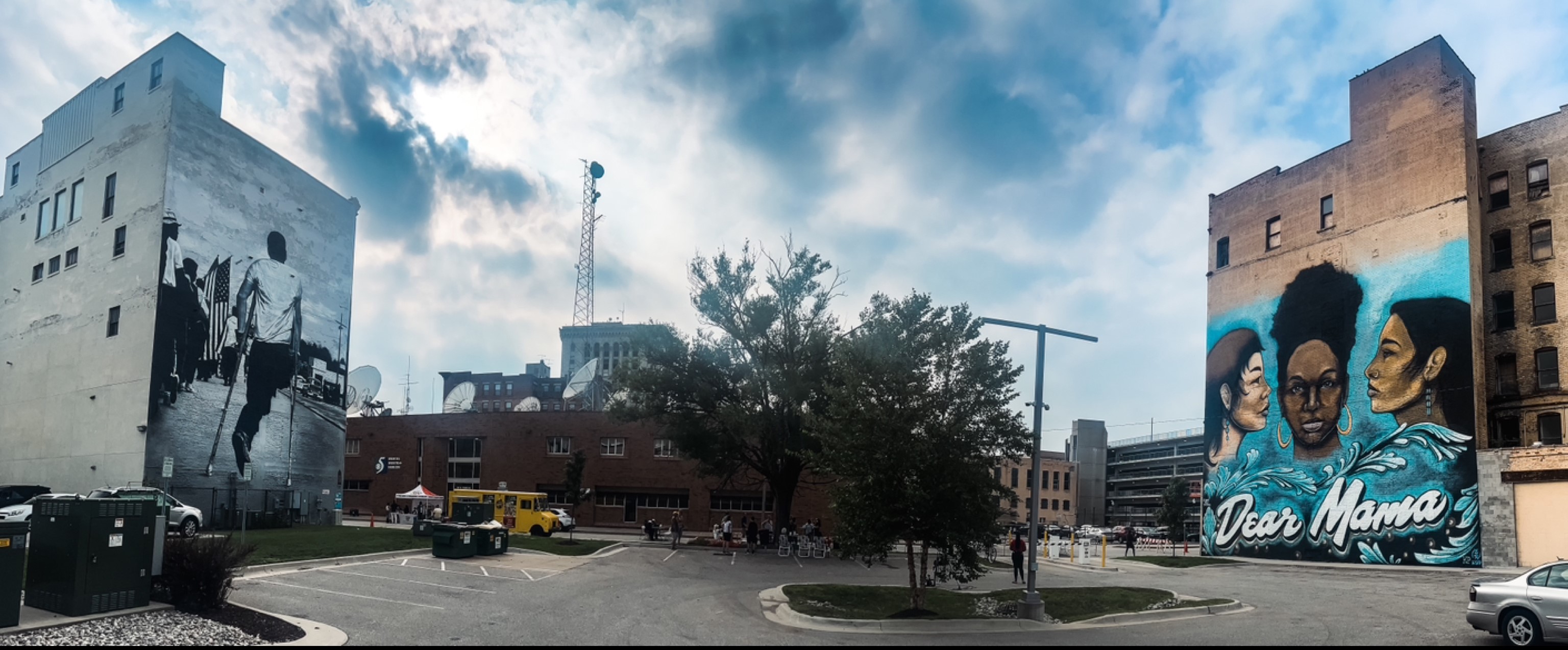 Anticipation builds for the second mural’s grand reveal on the Bearinger Building, across the parking lot from the Saginaw Past mural of Jim Letherer. Pit & Balcony Community Theater, The Showdown, and The Great Mural Project collaborated to merge Saginaw’s past and present into a colorful vision for all of Saginaw to see. The murals, side by side, stand as a testament to a city’s journey — one of courage, unity, and steadfast hope.